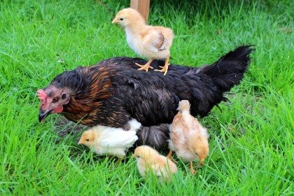 A mother with her children on stairs.
