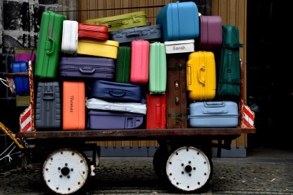 A man handling baggage.(荷物を運ぶ男)
