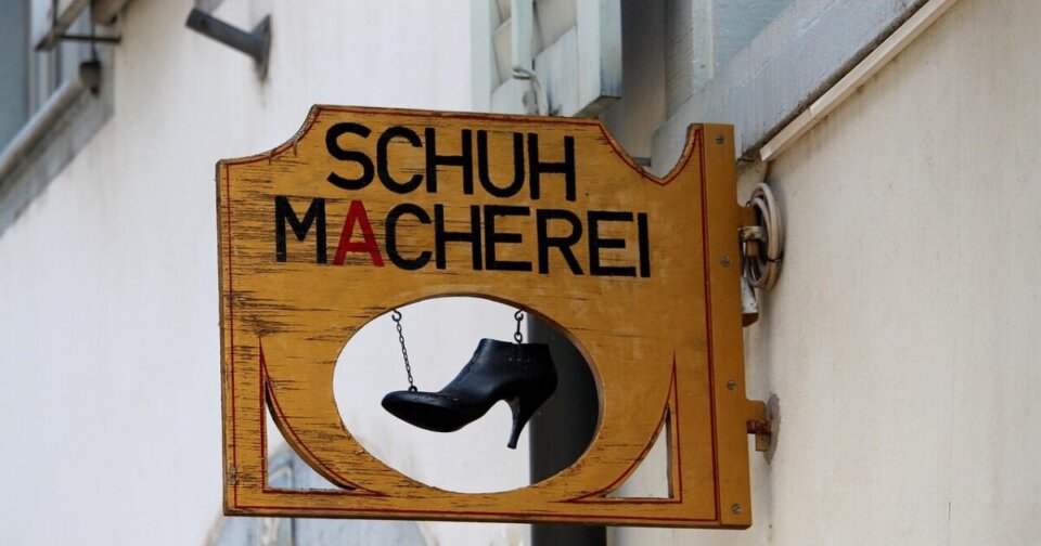 Two cobblers working at a table.(テーブルで作業する2人の靴職人)